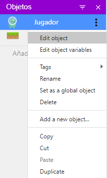 El jugador controlará un personaje que puede saltar y moverse en plataformas. Vamos a crear este objeto.