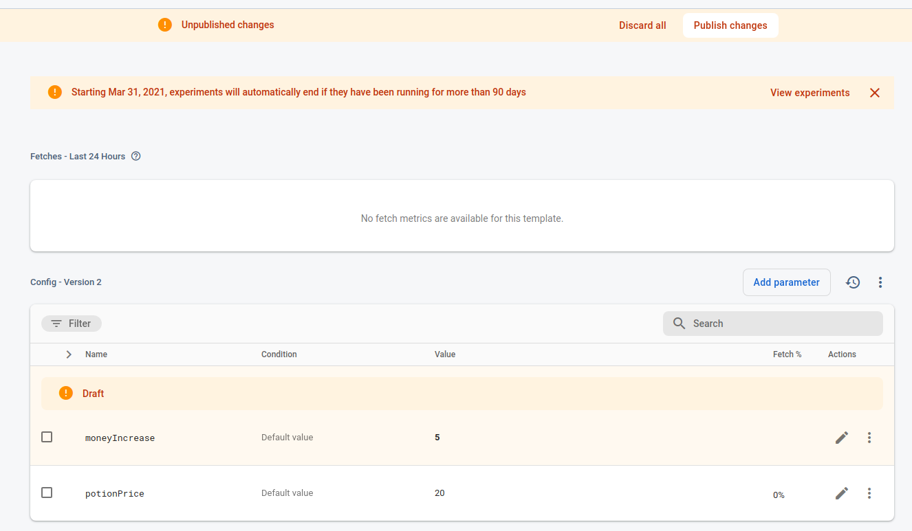 You should now be done setting it up. You only need to change values in the Firebase console to see it update in real time (or more precisely whenever the game syncs the Remote Configuration) in your game.