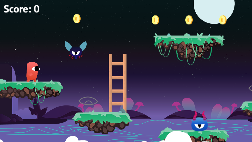 GDevelop comes with two behaviors to build platformer games. This first one, "Platform", allows to mark objects as platforms. The second, "Platformer character", allows the object to run and jump on platforms.