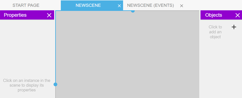 Click on the scene that we had made in the previous step to open the Scene Editor. This is where we will be making the game elements.