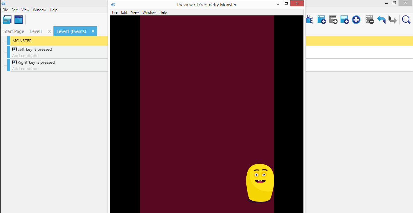 It worked - the preview of Geometry Monster game is launched, and you can already control the main character!