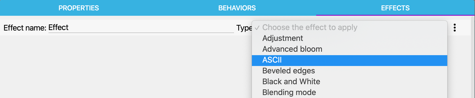 シーンエディタ上(またはオブジェクトのリスト上)でオブジェクトのインスタンスをダブルクリックして編集画面を開き、そこでEffectsタブを選択します。