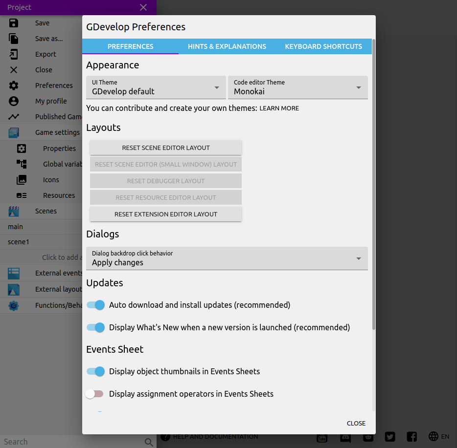 GDevelop shows some hints/explanations for some features in the UI. You can toggle them off if you don't want them to be shown.