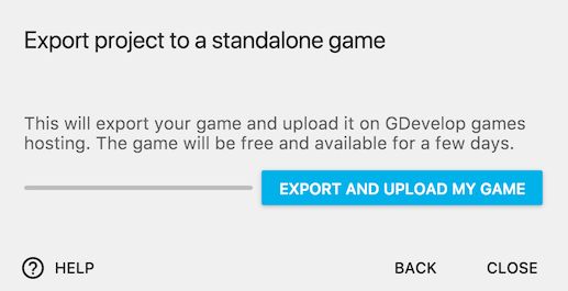 GDevelopホスティングサーバーを使用すると、ゲームをエクスポートしてWebで公開できます。ホスティングサーバーは無料です。ゲームは数日間利用可能になります!