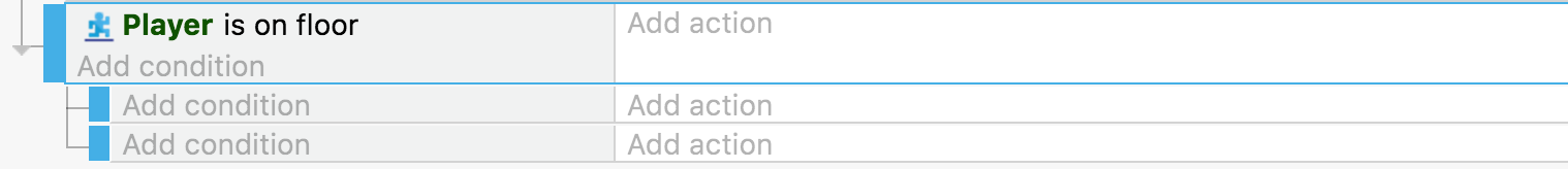 これらのイベント内に条件を追加できるようになりました!最初に、プレーヤーが動いているされているかどうかを確認する条件を追加します。