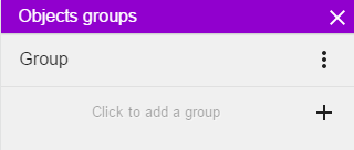This will open the object groups list. All the object groups in the scene will be visible on the list. To add a new object group to the list, click on the + sign beside Click to add a new group. This will add a new group to the list.
