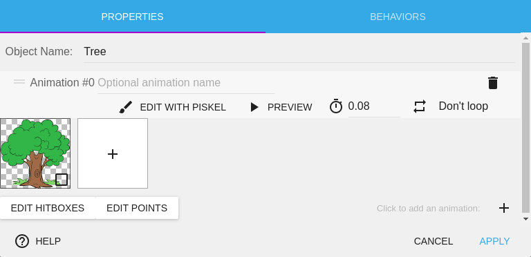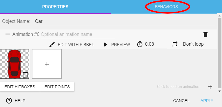 オブジェクトにアニメーションを追加しましょう。アニメーションには、スプライトオブジェクトの画面に表示される画像が含まれています。