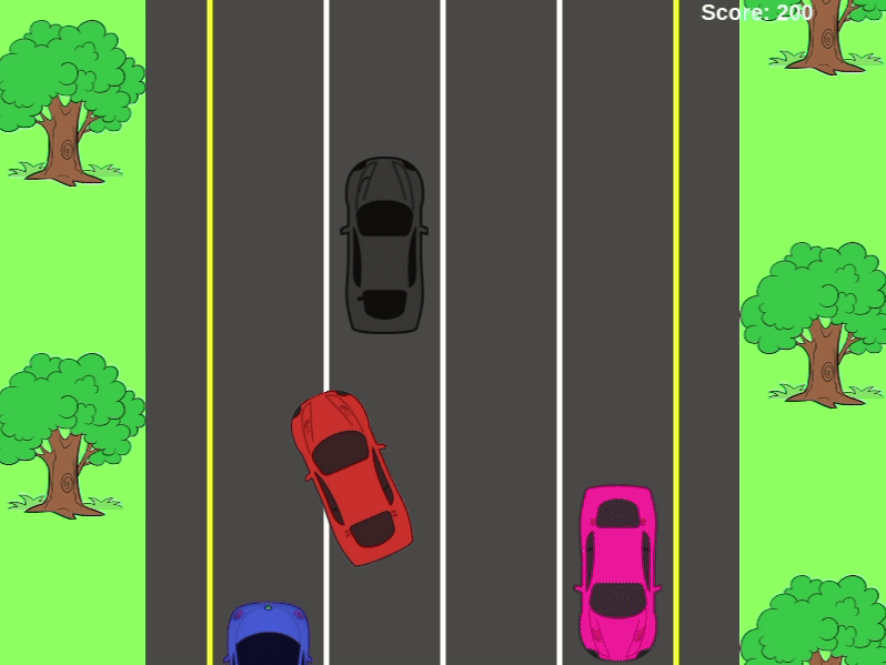 You have now created an infinite car game in which the score gets updated as we pass by the trees.