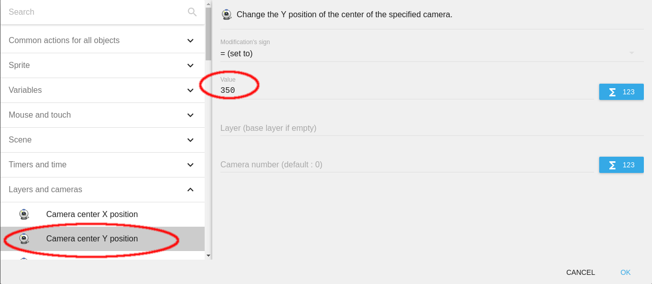 You can now follow a similar procedure for Y position as you did for X position but make sure that this time you choose the Camera center Y position option and enter the Y coordinate.