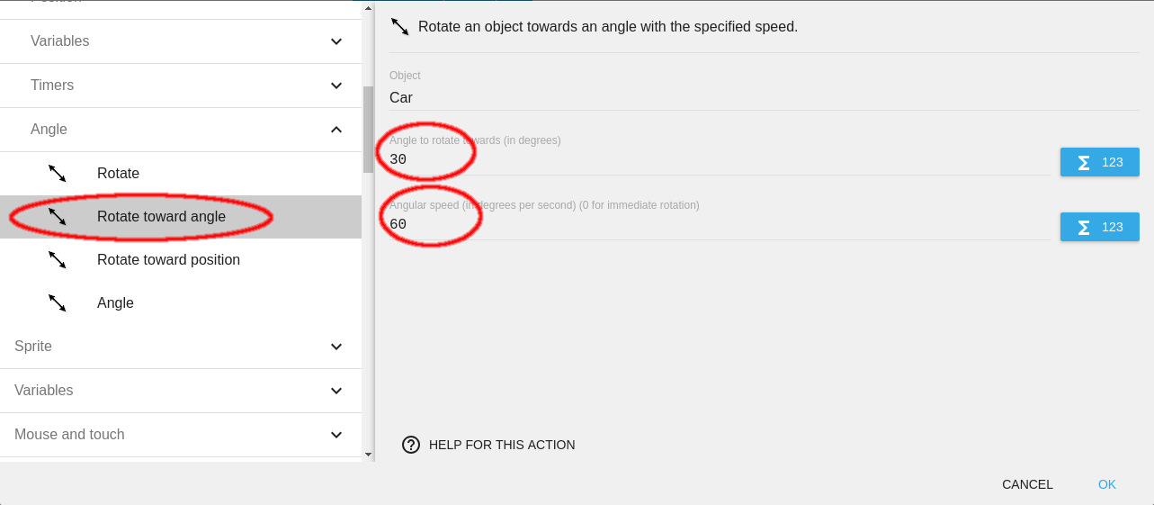 But before we move ahead, we also need to assign the Angular speed for the rotation. We will be using a value of 60 degrees/second for the same.
