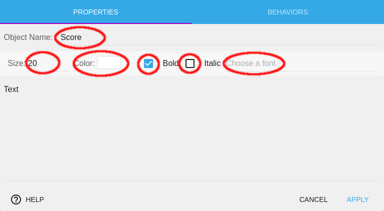You can rename the object to Score and choose the text properties from the Properties panel.